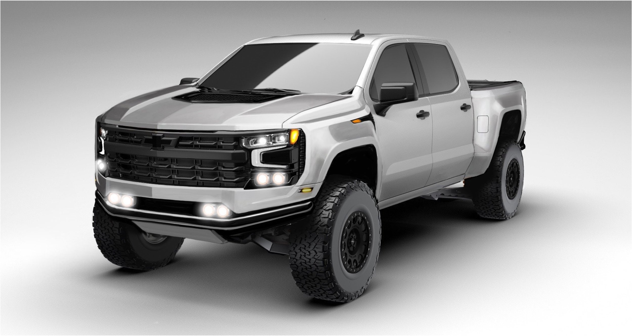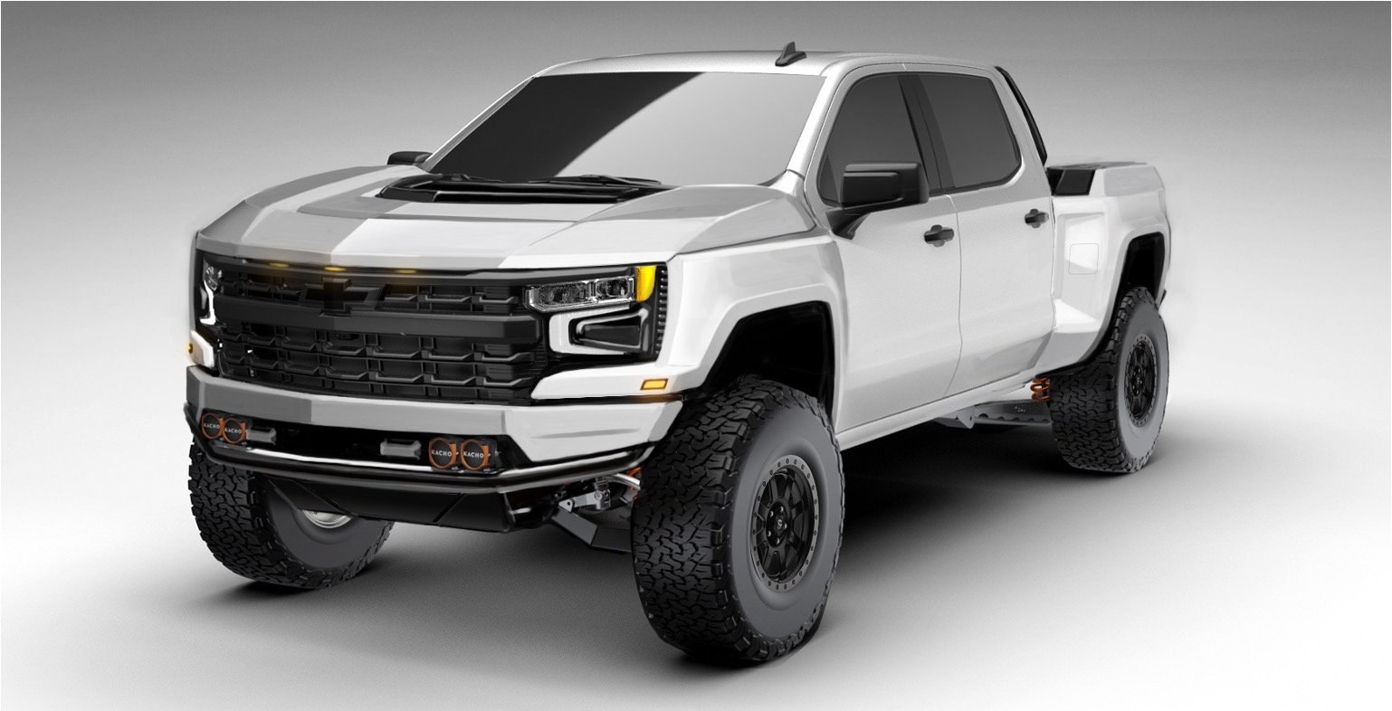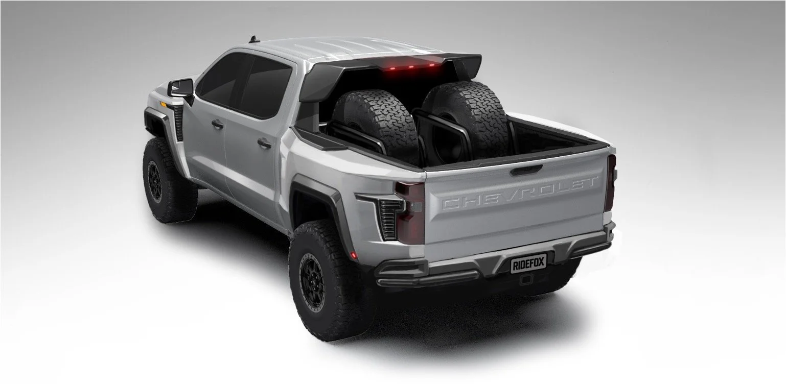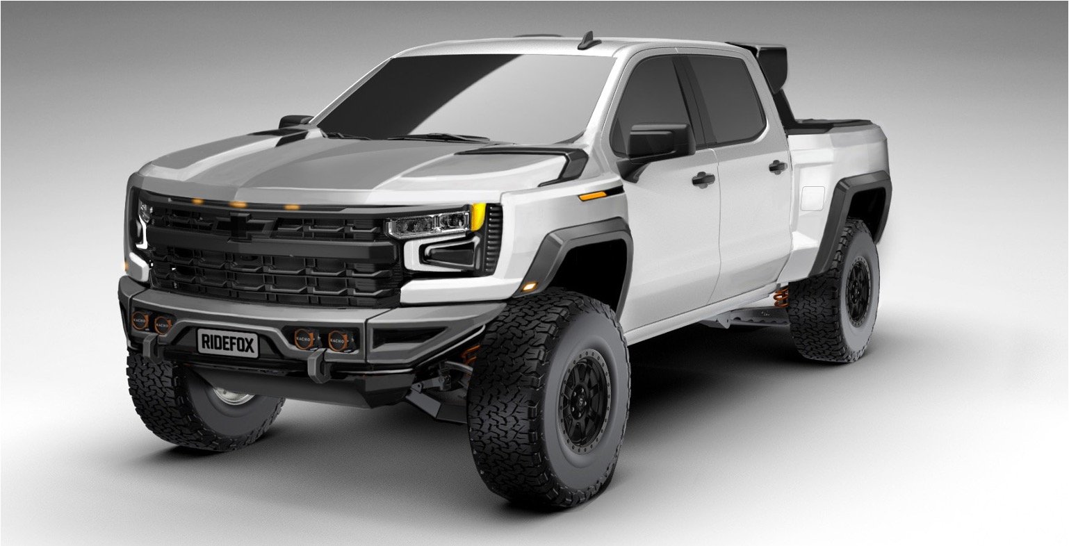 Develop an exterior concept that reflects the performance REPUTATION of Fox Factory over a Silverado Chassis.
