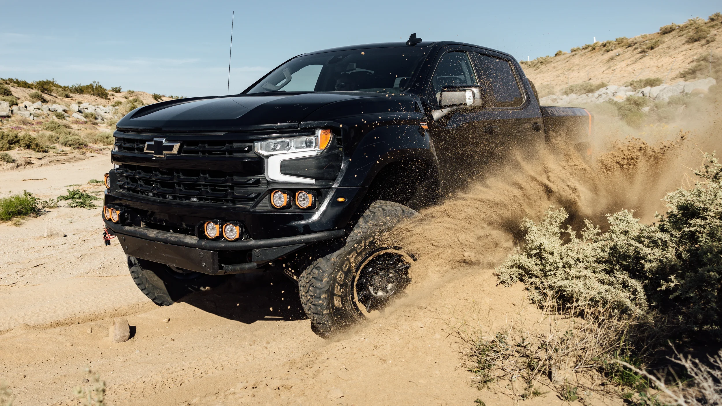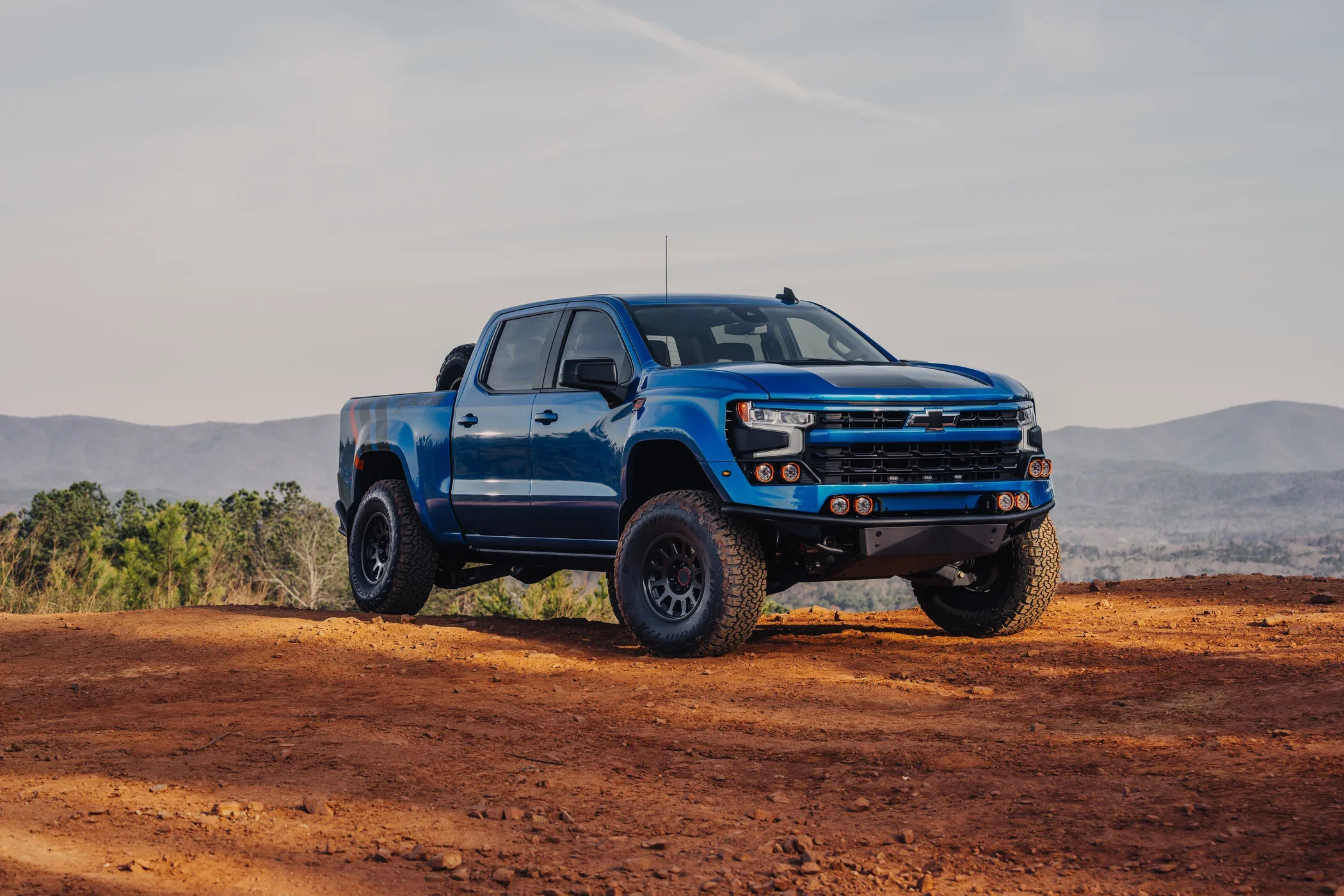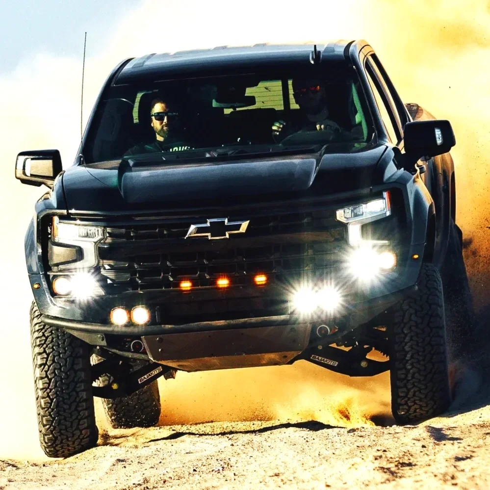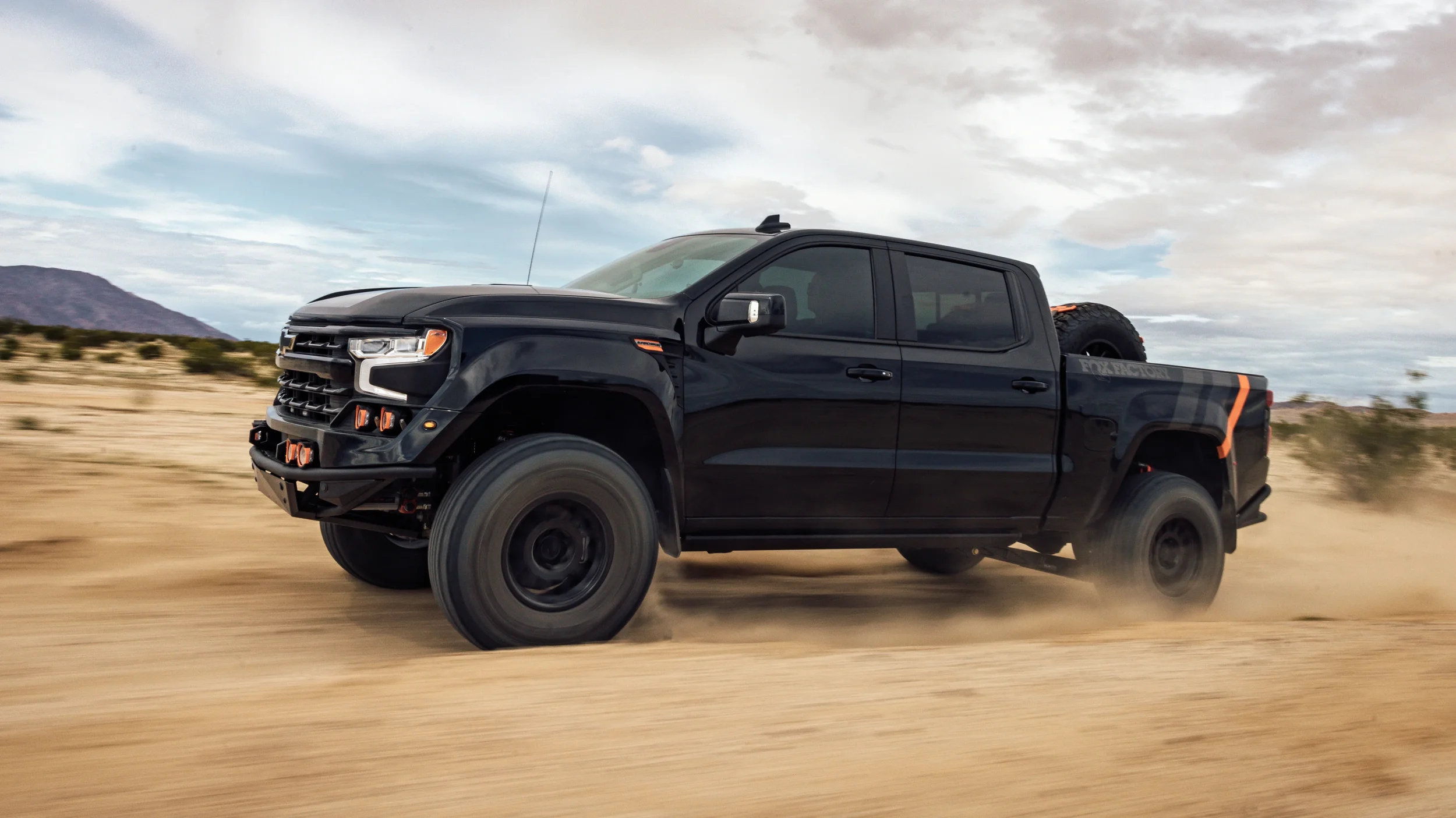Develop an exterior concept that reflects the performance REPUTATION of Fox Factory over a Silverado Chassis.