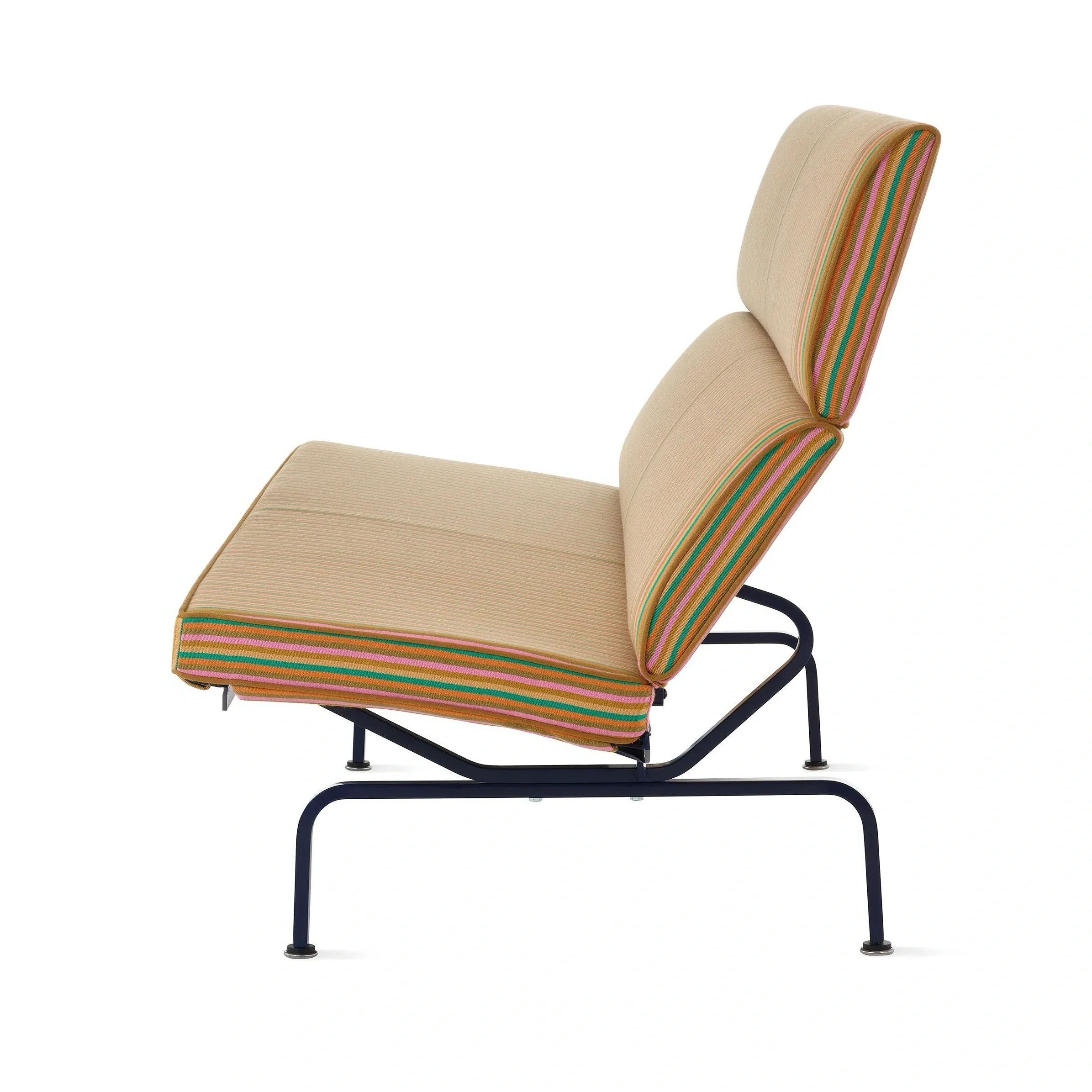 The mobile sofa problem sofa was actually solved in 1954 by Charles and Rae Eames. The Eames Compact Sofa for Herman Miller was created to alleviate issues related to shipping costs. This was done by making the sofa out of a foldable metal frame with exposed hardware, and included springs throughout the cushioning. So, like a traditional sofa, it contained the three major ingredients that make up a sofa’s architecture: a frame, springs, and foam cushions.