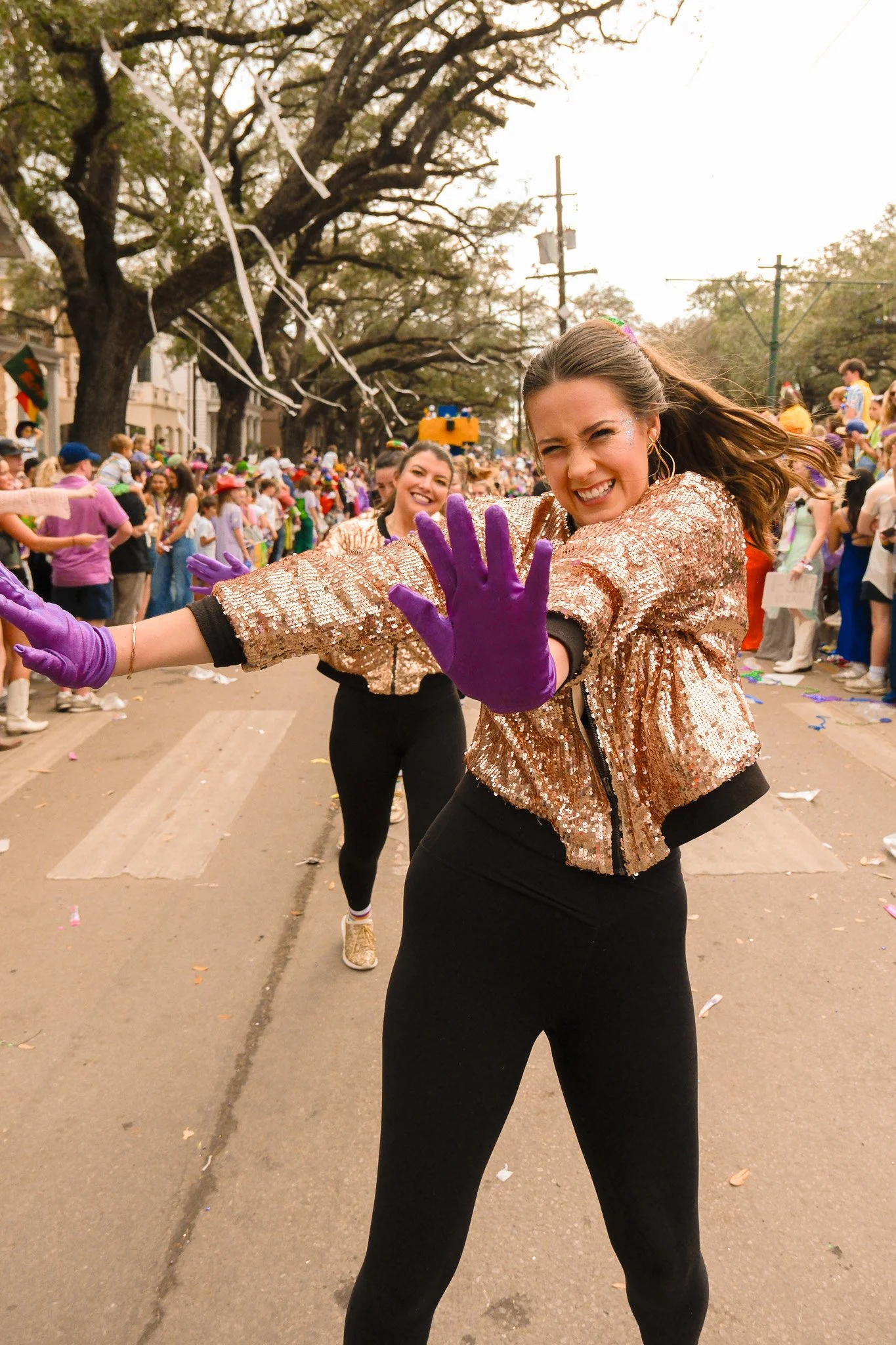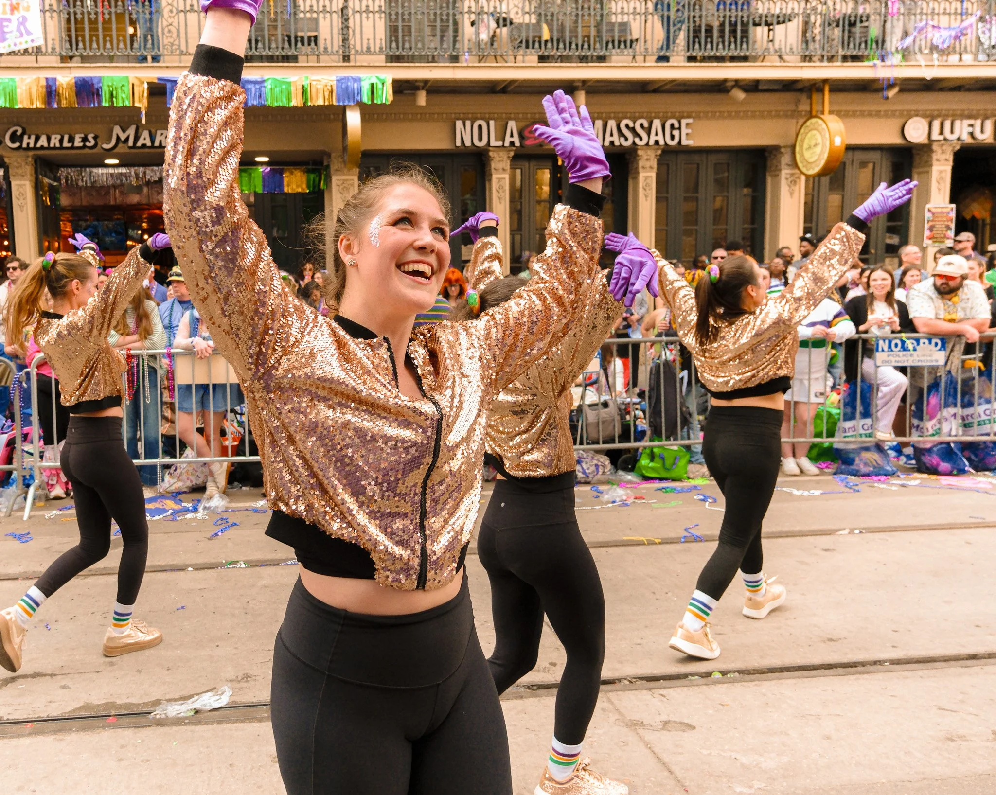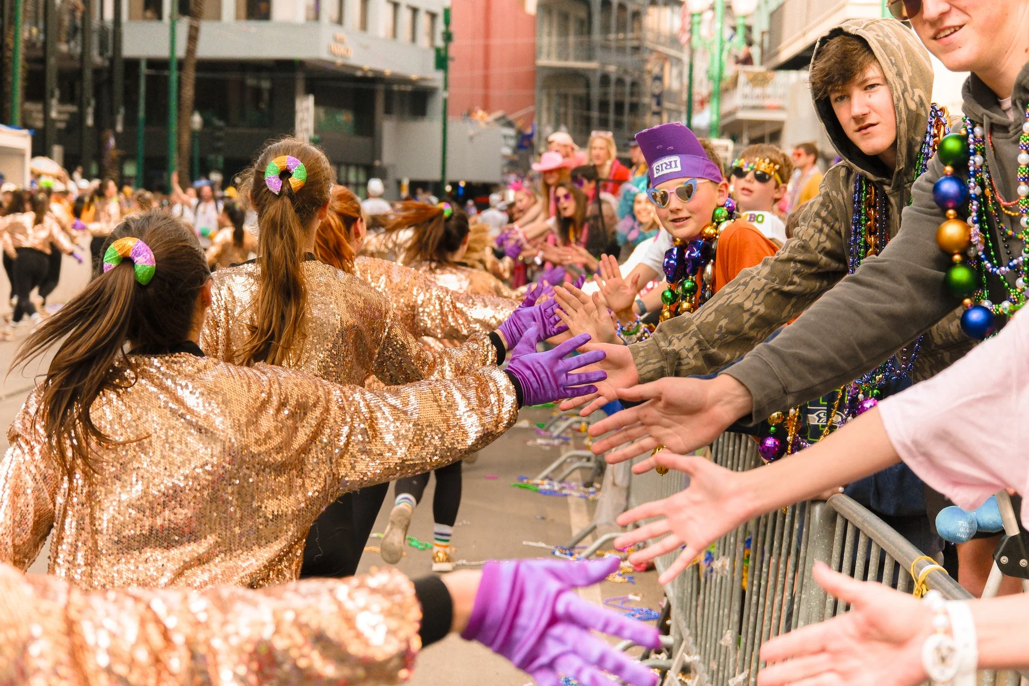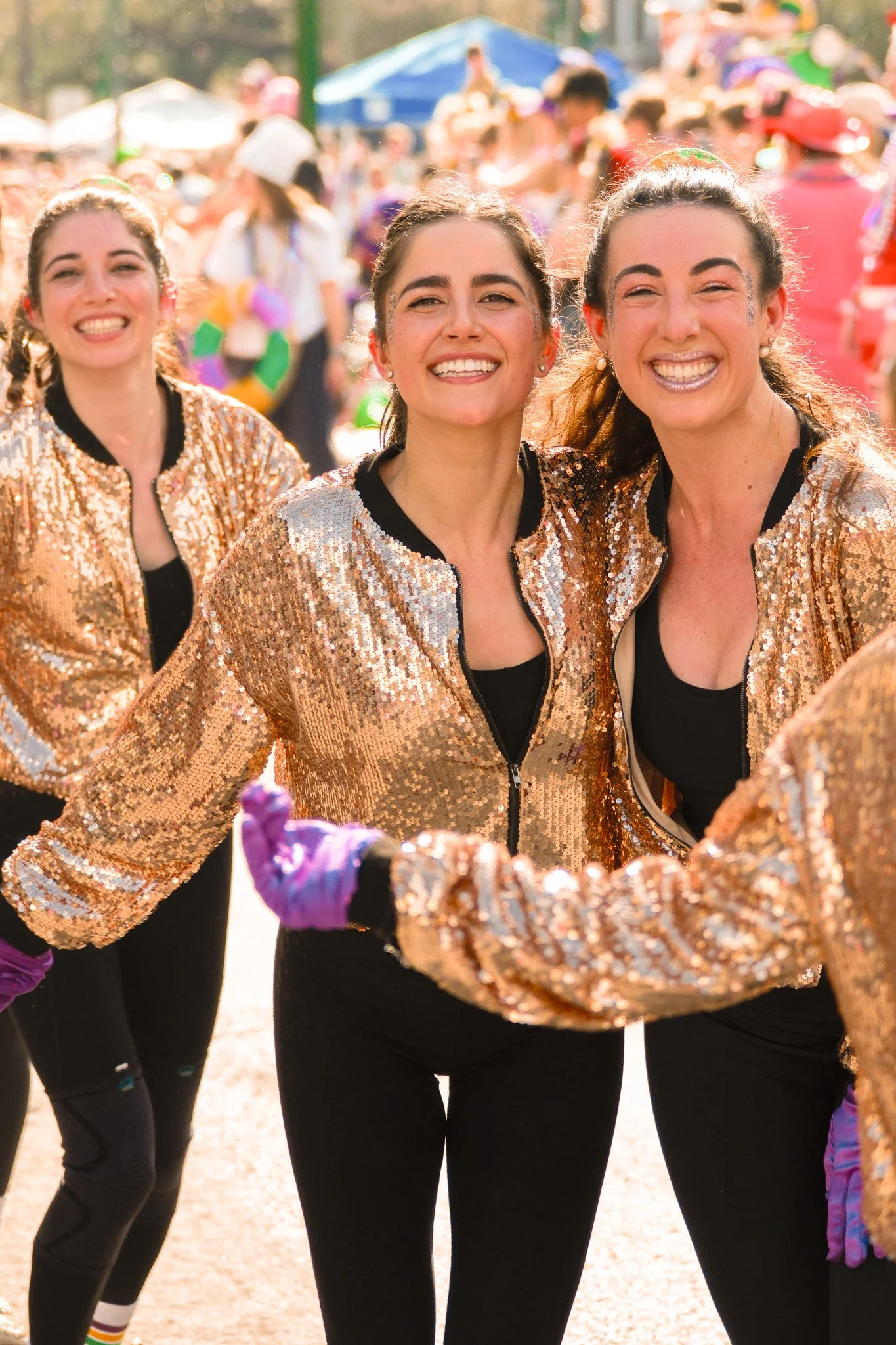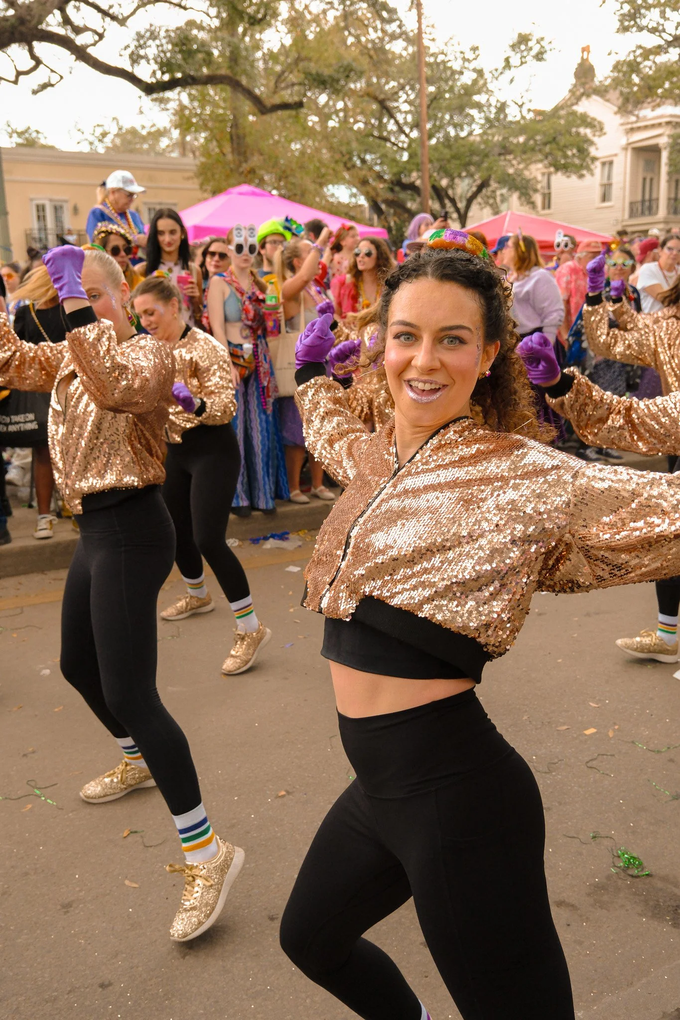 One of the wonderful privileges I get to partake in every year for Mardi Gras is walking with the King Cake Babies dance group during the Krewe of Tucks parade. It’s one of my favorite events to shoot! Not only because the photos usually come out quite stunning, but because it’s an excellent opportunity to practice action photography. Shooting during a moving parade is especially difficult because light conditions can change quite drastically. Focal lengths are always moving in and out as well, and there’s also the added danger of getting hit in the face by a wayward foot from one of the dancers. During the shoot, I did find myself having issues with using the autofocus settings properly on the still-new-to-me XE-5, but was still able to scrounge up a solid 292 high-quality shots good enough for print and sharing. Here’s a small selection of my favorites!
